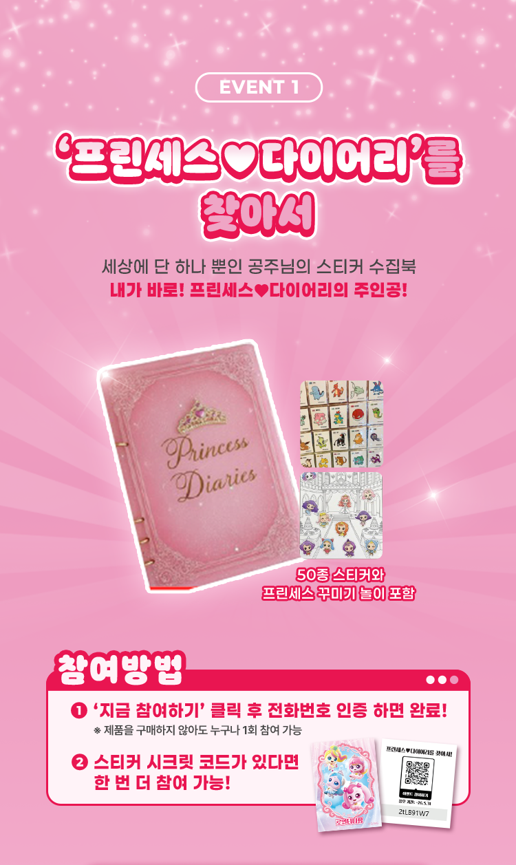 1인 1회 무료 참여 가능하며, 제품에 동봉된 티니핑 스티커 뒷면의 시크릿코드 입력 시 1회 추가 참여 가능합니다.